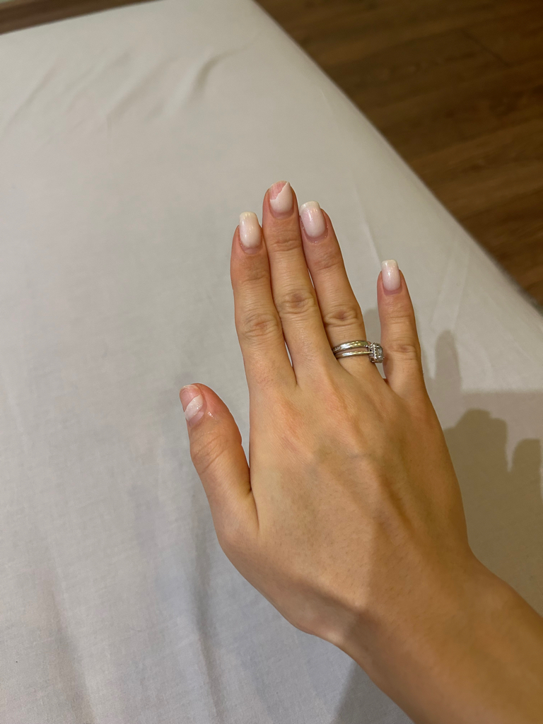 Через две с половиной недели пошли отслойки, все по отваливалось… очень грустно, Новый год я провела, пряча свои руки…