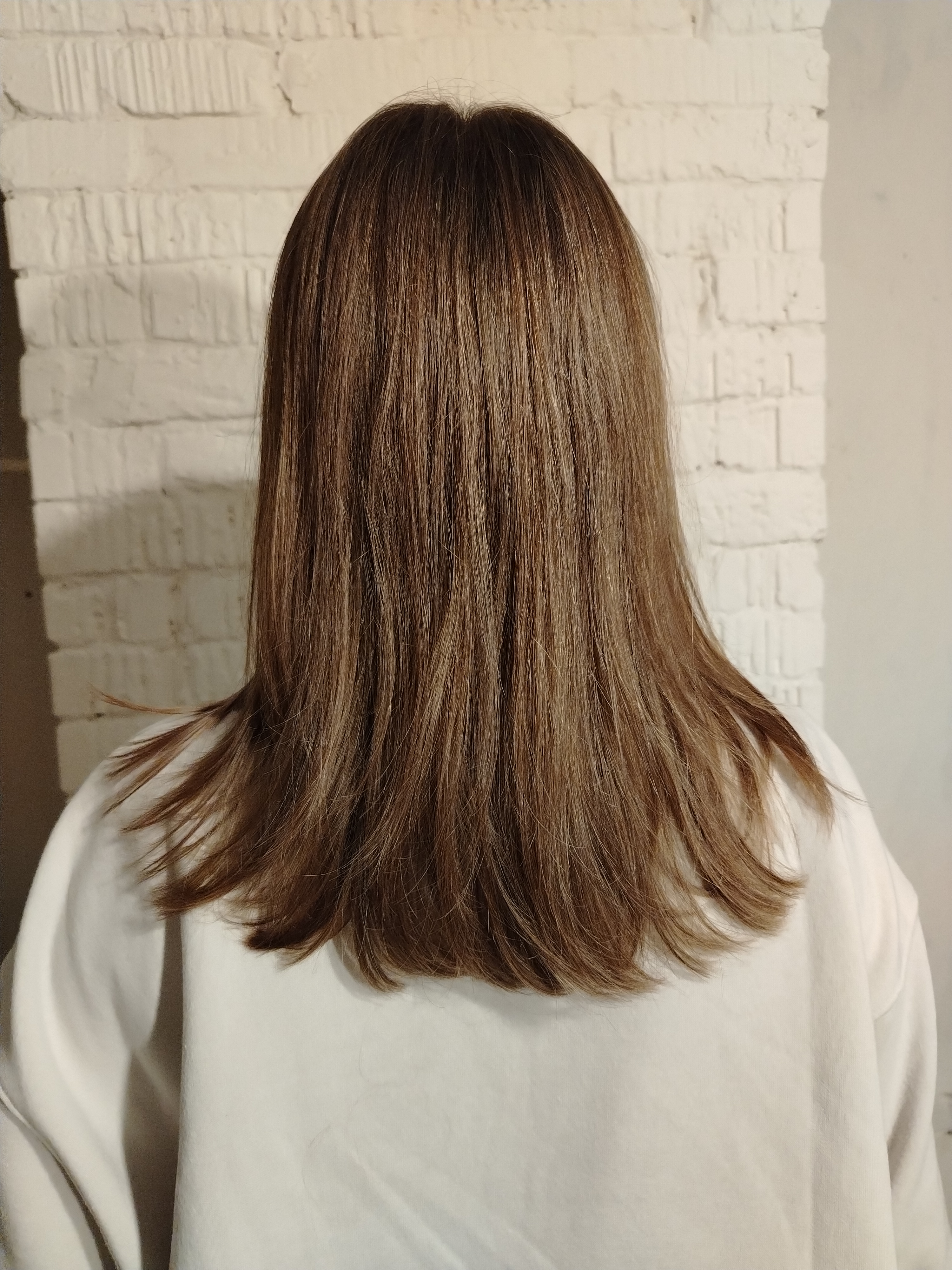 Совсем не то, что мне хотелось:( Какой цвет просила и какой получился. Вышло чуть светлее моего натурального цвета волос. Учитывая, что волосы ранее не были окрашены, я думаю можно было бы лучше справиться. Ладно, розовый оттенок не получился, но можно было хотя бы фон осветления повыше сделать.