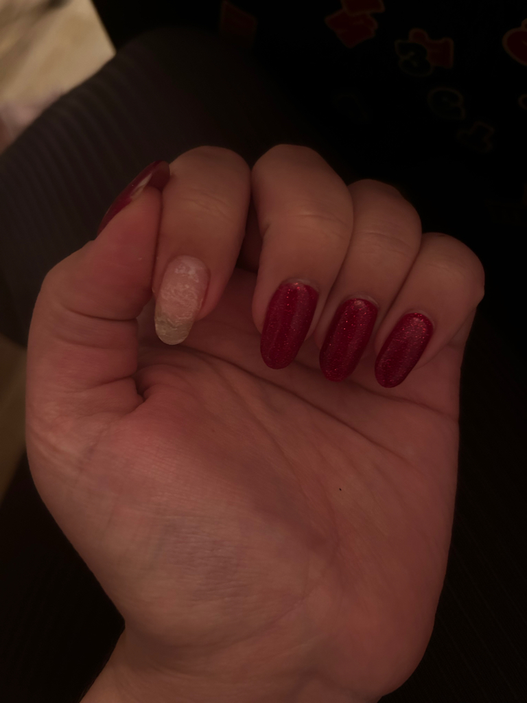 Была на маникюре 9 ноябрямастер доброжелательная хорошая ничего сказать плохого не хочу, в первый раз когда я пришла все сделали отлично с укреплением, второй раз тоже,но почему то на третий раз решили не делать укрепление хотя мастер говорила что всегда укрепляет но в этот раз почему то мне не сделали укрепление и ногти гнутся очень сильно и вообще один ноготь слез месяца даже нет)